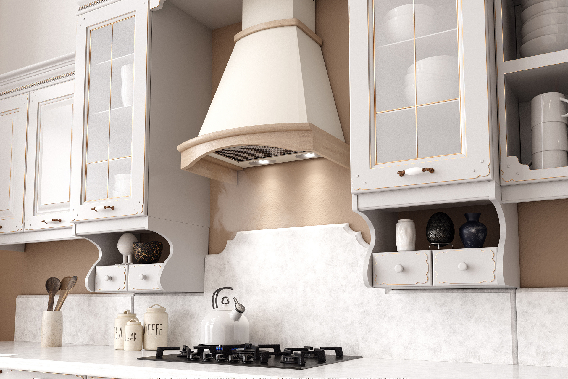 Для классических вытяжек используются материалы дуба или бука - древесина, которая устойчива к воздействию влаги, эластична и отличается высокими декоративными свойствами.